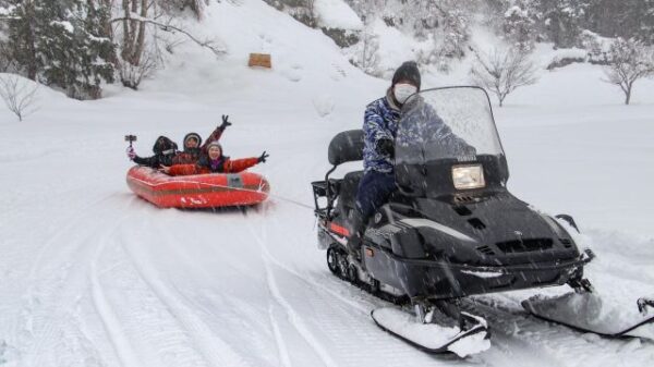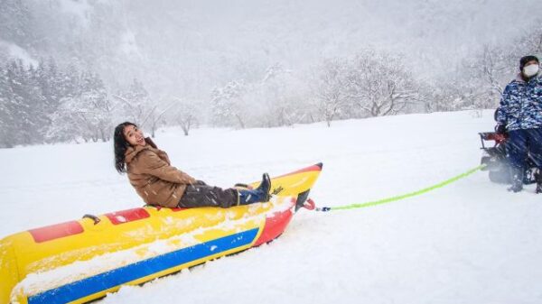 オプションで小型スノーモービル体験やバナナボート体験など 雪しぶきを上げながら楽しむことができる。