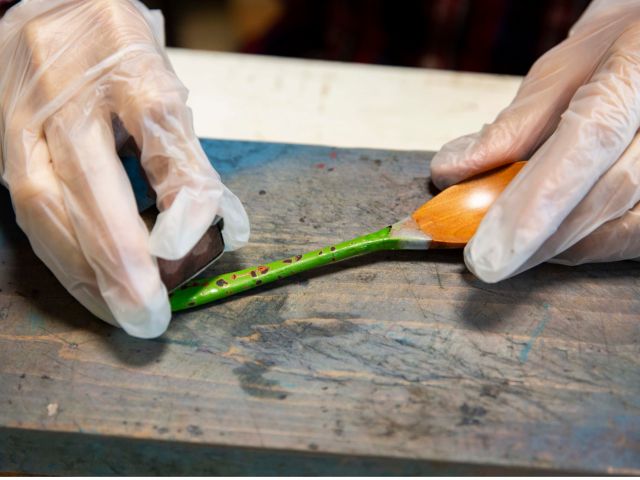 【青森】伝統工芸 津軽塗のオリジナル箸を作ろう津軽塗の代表的な技法、唐塗のお箸やスプーンの研ぎ出し体験内容 通…