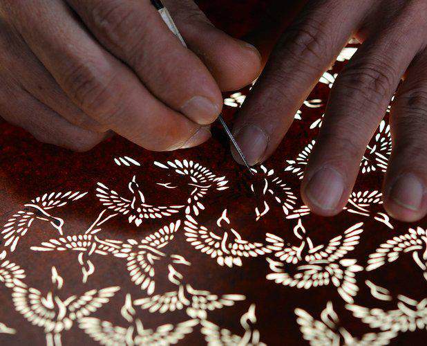 Discover the refined aesthetic world of the Kyo-Yuzen Engraving, these artistic handmade paper patterns delicately engraved to compose the beautiful motifs of traditional Japanese kimonos and accessories.