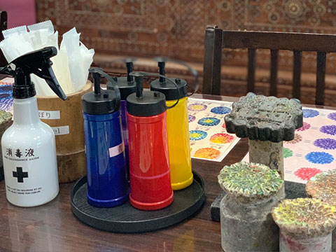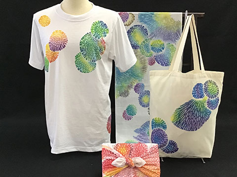 Tシャツやトートバックなどお好みのアイテムに カラフルなサンゴの模様を染めていく体験。
