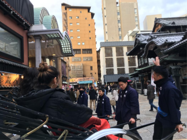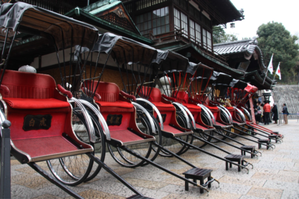 【愛媛】日本有数の温泉街を巡る人力車の旅!道後温泉近辺を人力車で巡ります!内容 通年 人力車定員:2人/1台 所要時間:10分~1時間 道後温泉近辺を人力車で巡ります! その土地を知り尽くした車夫の方たちが選べる3つのコースを案内してくれます! 安心安全に人力車で思い出を作りましょう!