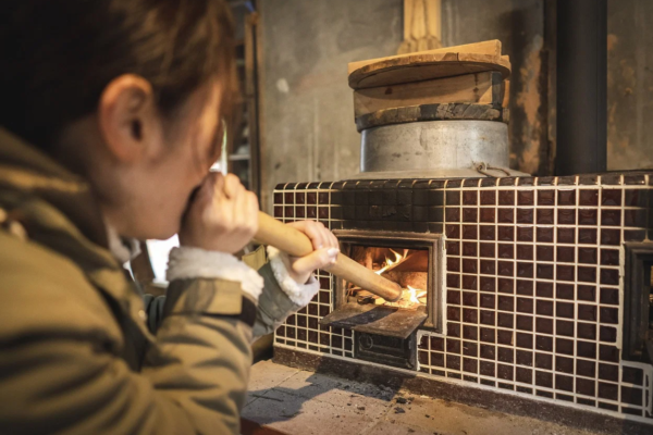 白瀧の森をを超えた小さな集落にある古民家「白瀧どんぐり小屋」で、昔ながらにかまどに薪をくべ、火を熾し、自分たちでごはんを炊きあげる。